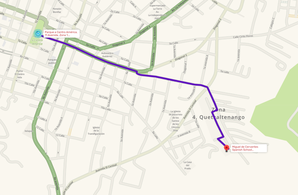 Upon arriving in Xela simply take a Uber or take a taxi. Taxis are normally in front of any bus station. A taxi will charge you around Q 35- Q45.